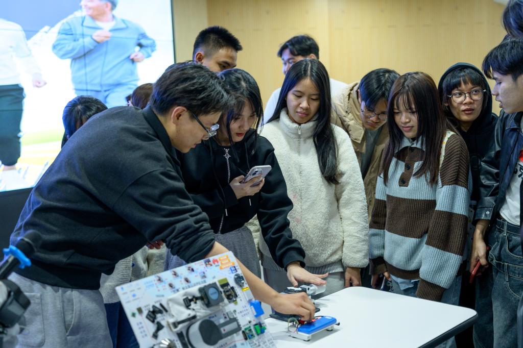 为增强交流的深度与实效,学院特别组织了两支具有代表性的学生创业团队进行现场分享。专注于“人工智能+硬件”创新的维脉无界团队,展示了其在智慧医疗设备研发中的核心技术突破与产业化应用前景;而聚焦“人工智能+软件”方向的越进编程团队,则分享了其在人工智能与编程教育推广方面的实践路径。两场分享内容翔实、视角新颖,展现了北邮学子将技术能力与社会需求紧密结合的创新意识,引发了泰国学生的浓厚兴趣与积极互动。